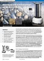 Die Analyse größerer Schüttgutmengen erfolgt in der Regel mittels Wurfsiebung. Bei vielen auf dem Markt erhältlichen Wurfsiebmaschinen ist der Siebturm auf Federn montiert, die vertikal schwingen. Um das Siebgut jedoch gleichmäßig über die gesamte Siebfläche zu verteilen, hat sich die sogenannte 3-D Wurfsiebung als vorteilhaft erwiesen, wie sie bei der AS 450 control zum Einsatz kommt.